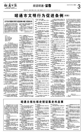 关于征求《昭通市文明行为促进条例(草案)》意见的公告
