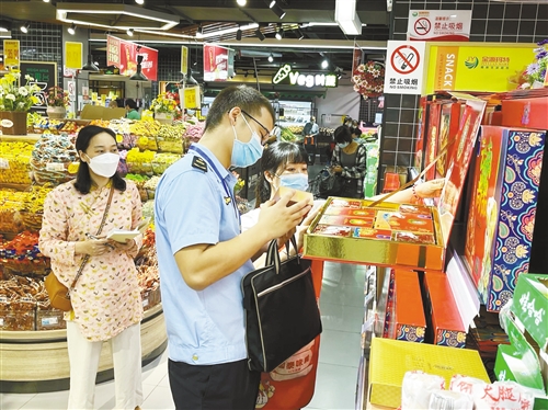水富开展节前 月饼市场专项检查 9月1日,水富市市场监管局、发改局、工信商科局联合在辖区重点场所开展中秋节前月饼市场专项检查。 此次专项检查重点检查月饼过度包装、“天价”月饼和蟹卡蟹券不规范经营行为。当天,专项检查组共检查商超6家、农贸市场3个,抽检月饼9批次。目前暂未发现有过度包装、“天价”月饼等违法行为。 通讯员 董莉莉 摄