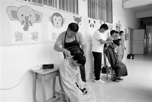 巧家县特殊教育学校属九年一贯制学校,该校在办学过程中最大限度地提升每个残障孩子的教育和康复效果,挖掘每个特殊孩子的潜能,培养孩子的一技之长,让每个残障孩子都能健康成长、成才。学生刚进校时,老师要从最基本的吃饭、上厕所、睡觉、洗澡等常识教起,帮学生理发、洗澡、换洗衣服是老师的工作常态。图为9月6日,巧家县特殊教育学校教师为新入学孩子理发。 通讯员 陈红云 摄