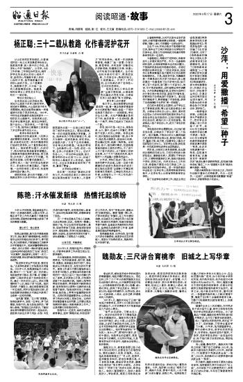 陈艳勤勤恳恳、任劳任怨,坚守着三尺讲台辛勤耕耘,她是学生忠实的领路人,是家长可信赖的朋友,是教师队伍中的前行者。