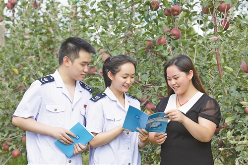 税务干部上门服务涉农企业 党的十八大以来,在国家产业政策的推动下,昭通市税务部门坚持政策扶持,推动苹果产业优化升级,让苹果产业行稳致远。图为昭阳区税务干部走访昭通超越农业有限公司苹果基地,宣传助企惠农税收优惠政策,为乡村振兴注入“税”动力。 通讯员 唐 宁 摄
